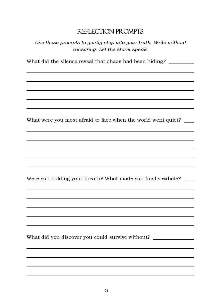 These pages begin the walk into yourself.Each chapter carries a rhythm — truth, reflection, embodiment — so the storm teaches both the mind and the body.