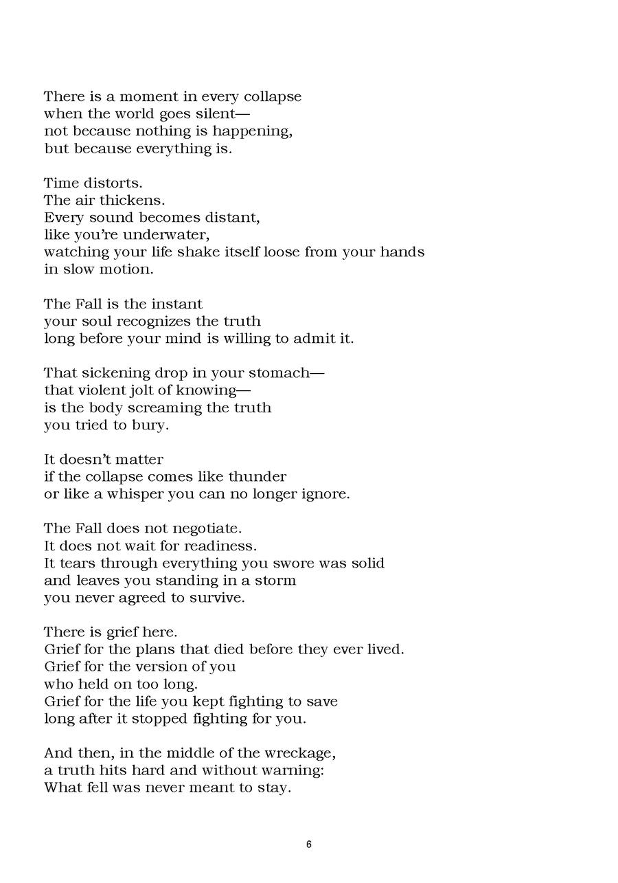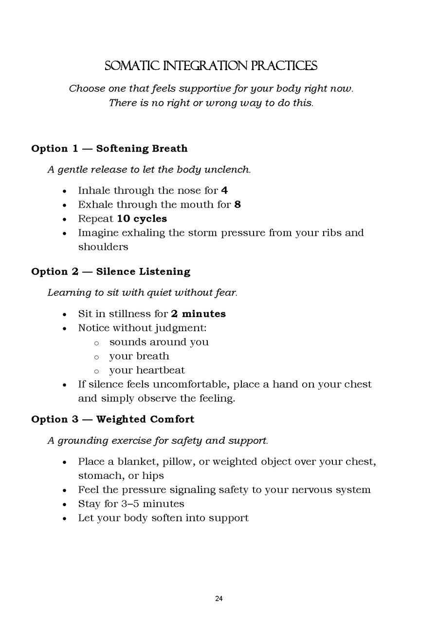 These pages begin the walk into yourself.Each chapter carries a rhythm — truth, reflection, embodiment — so the storm teaches both the mind and the body.